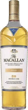 The Macallan Double Cask Gold forms part of our Double Cask range which marries the classic Macallan style and the unmistakable sweetness of American oak. Light citrus notes and boiled sweets that dominate the palate before giving way to cinnamon, ginger | An intriguing single malt that celebrates the coming together of two styles, Double Cask Gold reflects a perfect harmony of flavours and natural colour. The perfect partnership of American and European Oloroso sherry seasoned oak casks creates this burn